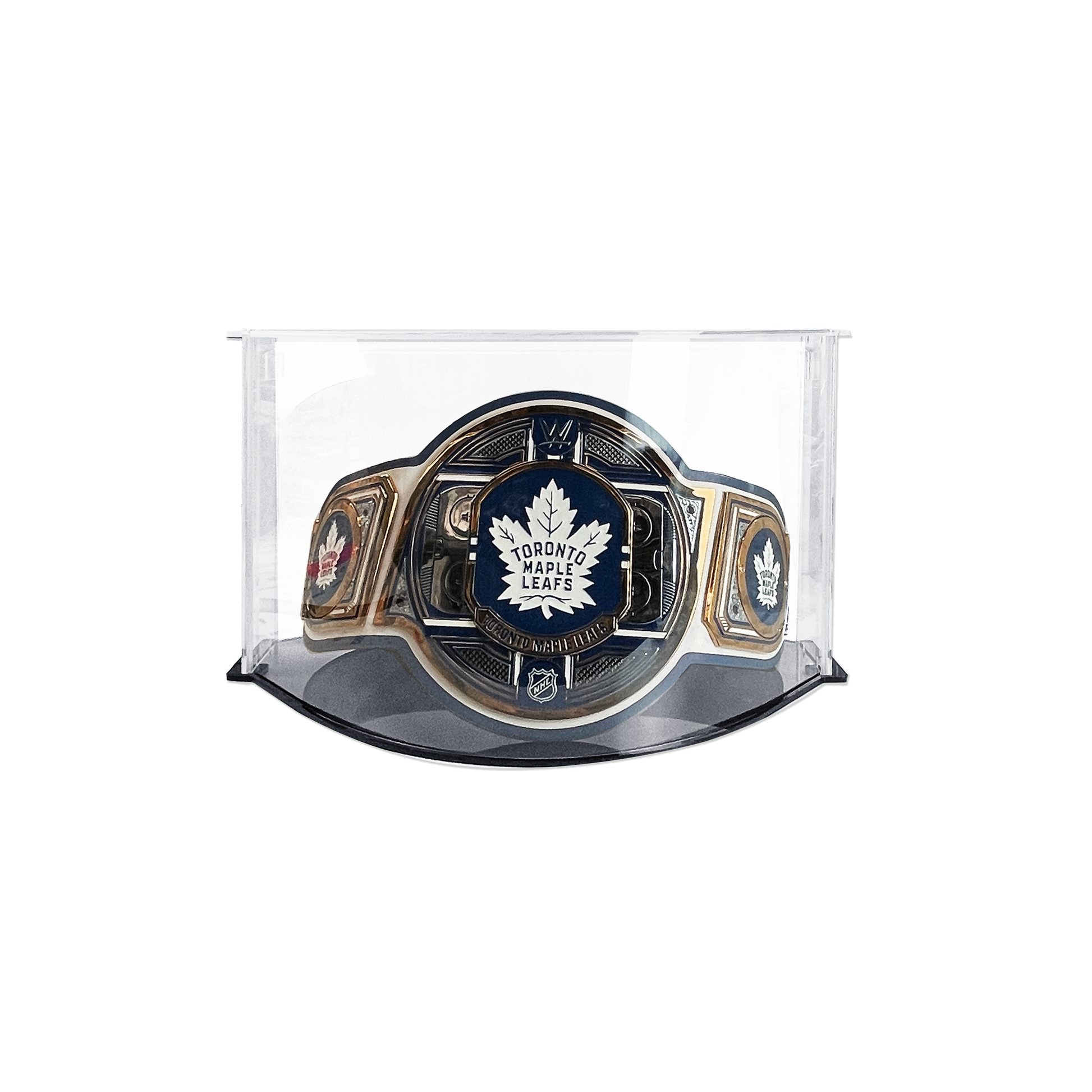 Our 12.5"h double curve display case is the perfect height for your championship belts. With clear virgin acrylic on the front and back your viewers can see your prized collection from all angles.